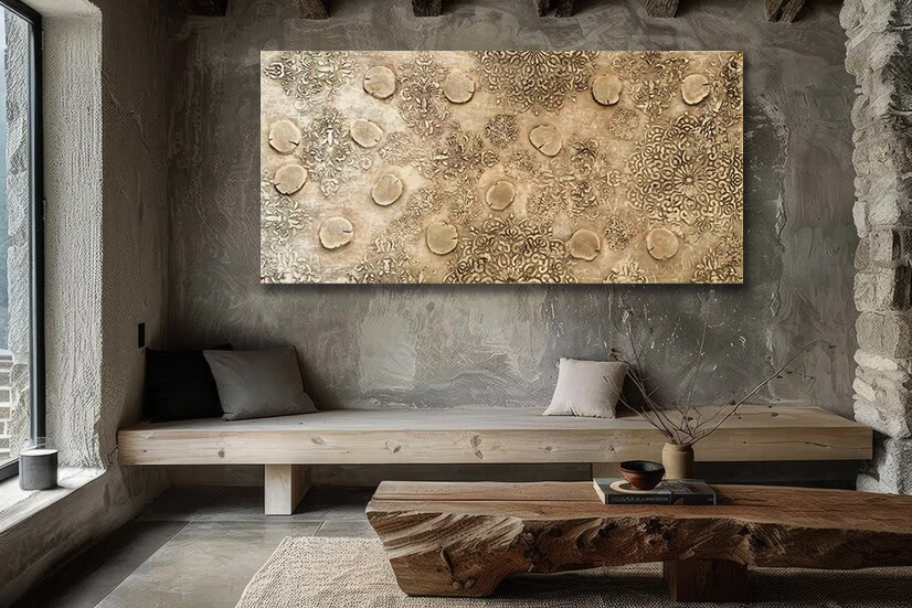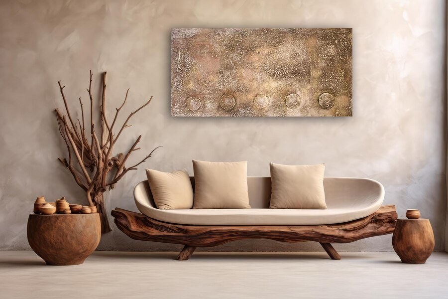 Robustest, rustikales, ländliches Gemälde mit sehr detailierten reliefmustern, die alle leicht unterschiedlich und einzigartig sind, in wunderschönen alten Schoko - Braun -Vanille, ein echter Hingucker an Ihrer Wand, in einem extragroßen Format von 100x200x4cm